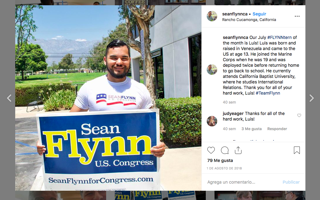 Flynn ran an aggressively conservative race claiming an “incomplete patchwork of immigration policies has left the Inland Empire vulnerable to terrorists, drug cartels, and human trafficking.” (Flynn lost to Democrat Pete Aguilar.)